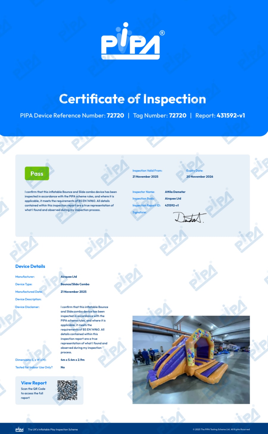 The inflatable will be professionally set up by a qualified and uniformed member from 1-2-3 Bounce Ltd.