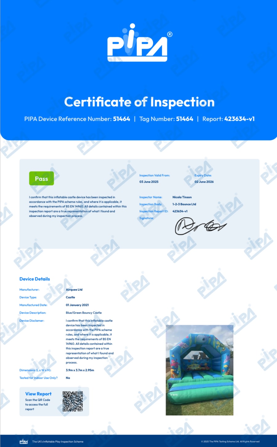 The inflatable will be professionally set up by a qualified and uniformed member from 1-2-3 Bounce Ltd.