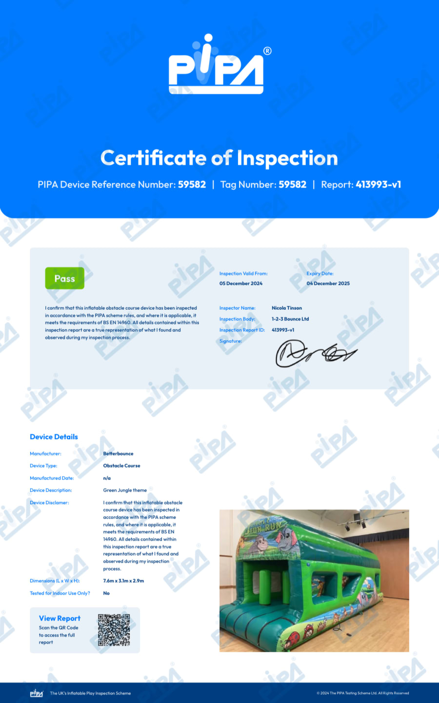 Space required: Ensure you have adequate space for the inflatable and include an extra 2ft to the sides and an additional 4ft to the rear to allow for the blowers and safety mats.