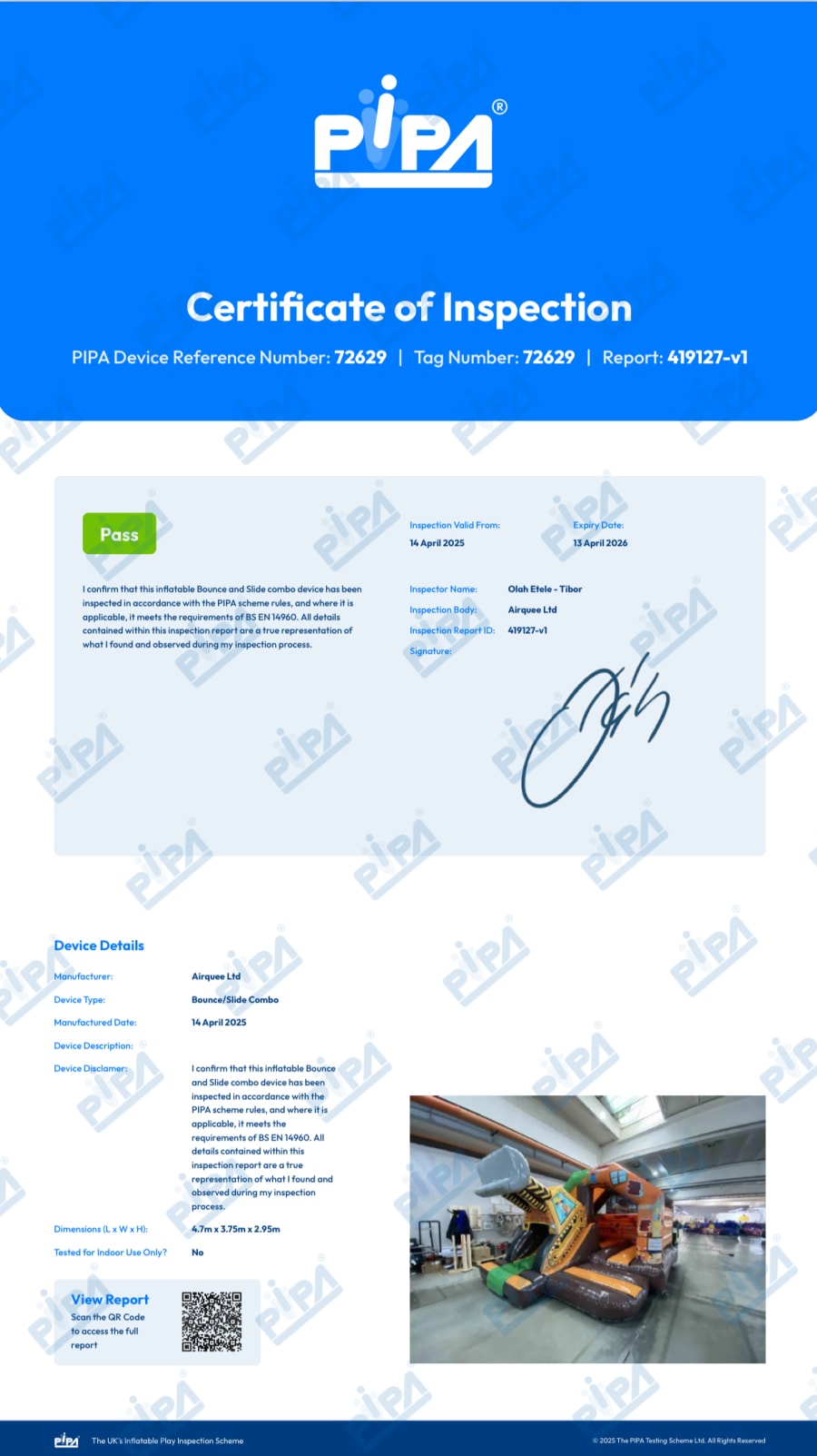 The inflatable will be professionally set up by a qualified and uniformed member from 1-2-3 Bounce Ltd.