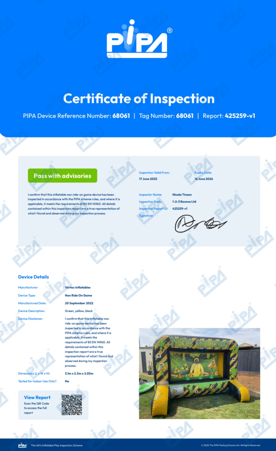 Space required: Ensure you have adequate space for the inflatable and include an extra 2ft to the rear of the shootout to allow for the blower.