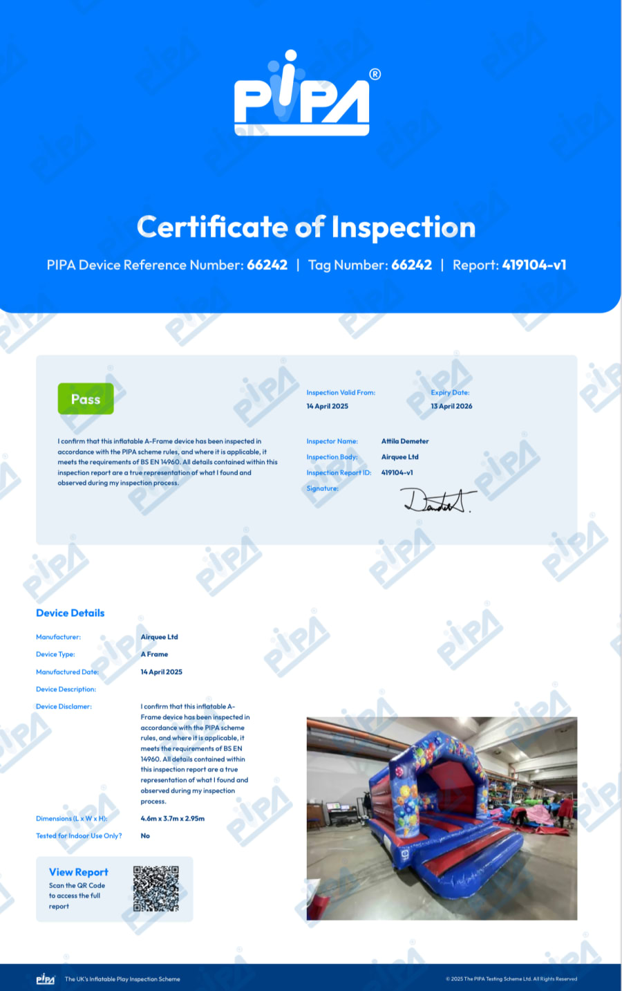 The inflatable will be professionally set up by a qualified and uniformed member from 1-2-3 Bounce Ltd.