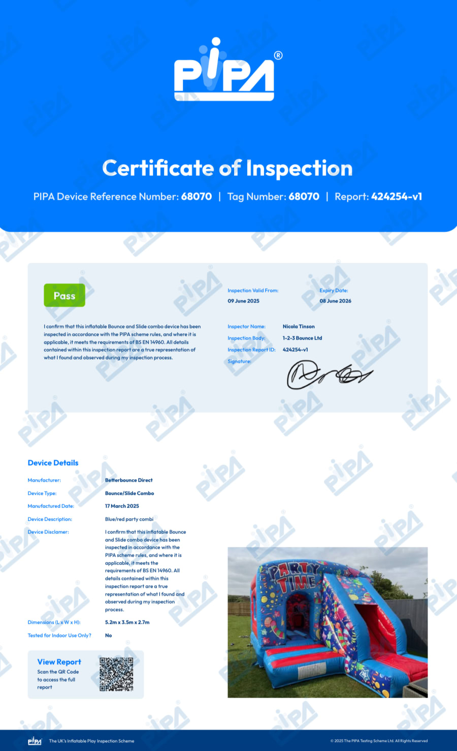 The inflatable will be professionally set up by a qualified and uniformed member from 1-2-3 Bounce Ltd.