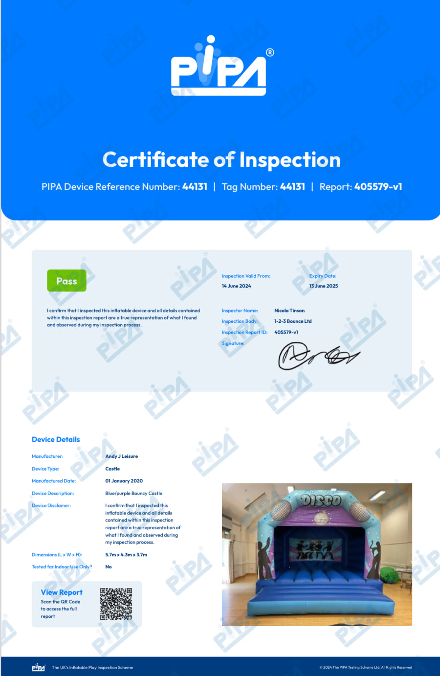 The Blue Adult/Child 'Disco' bouncy castle will provide endless entertainment and is perfect for all occasions.